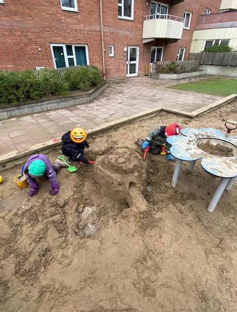 När snön smälte förvandlades sandlådan till en stor vattenpöl. För att gården skulle vara säker att använda behövde vi tömma …